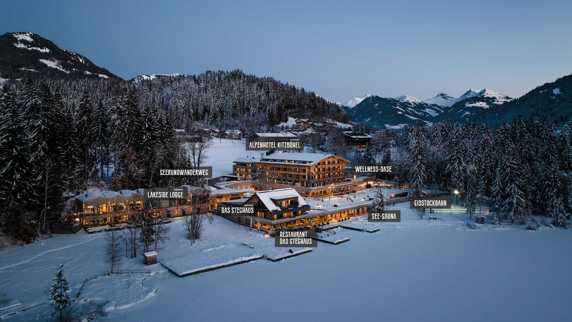 Edle Hölzer, natürlich strukturierte Materialien und Textilien stehen für die alpin elegante Atmosphäre im neugebauten Hotel. Das Alpenhotel Kitzbühel besteht aus 3 nebeneinanderliegenden Gebäuden direkt am Schwarzsee. Da gibt es zum einen das Alpenhotel-Haupthaus, gefolgt von der Lakeside Lodge mit Garten und die im Das Steghaus gelegenen Suiten.