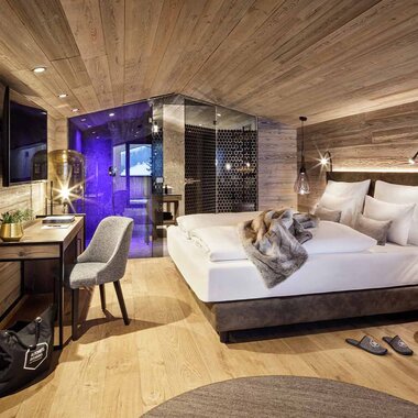 Edle Hölzer, natürlich strukturierte Materialien und Textilien stehen für die alpin elegante Atmosphäre im neugebauten Hotel. Das Alpenhotel Kitzbühel besteht aus 3 nebeneinanderliegenden Gebäuden direkt am Schwarzsee. Da gibt es zum einen das Alpenhotel-Haupthaus, gefolgt von der Lakeside Lodge mit Garten und die im Das Steghaus gelegenen Suiten.